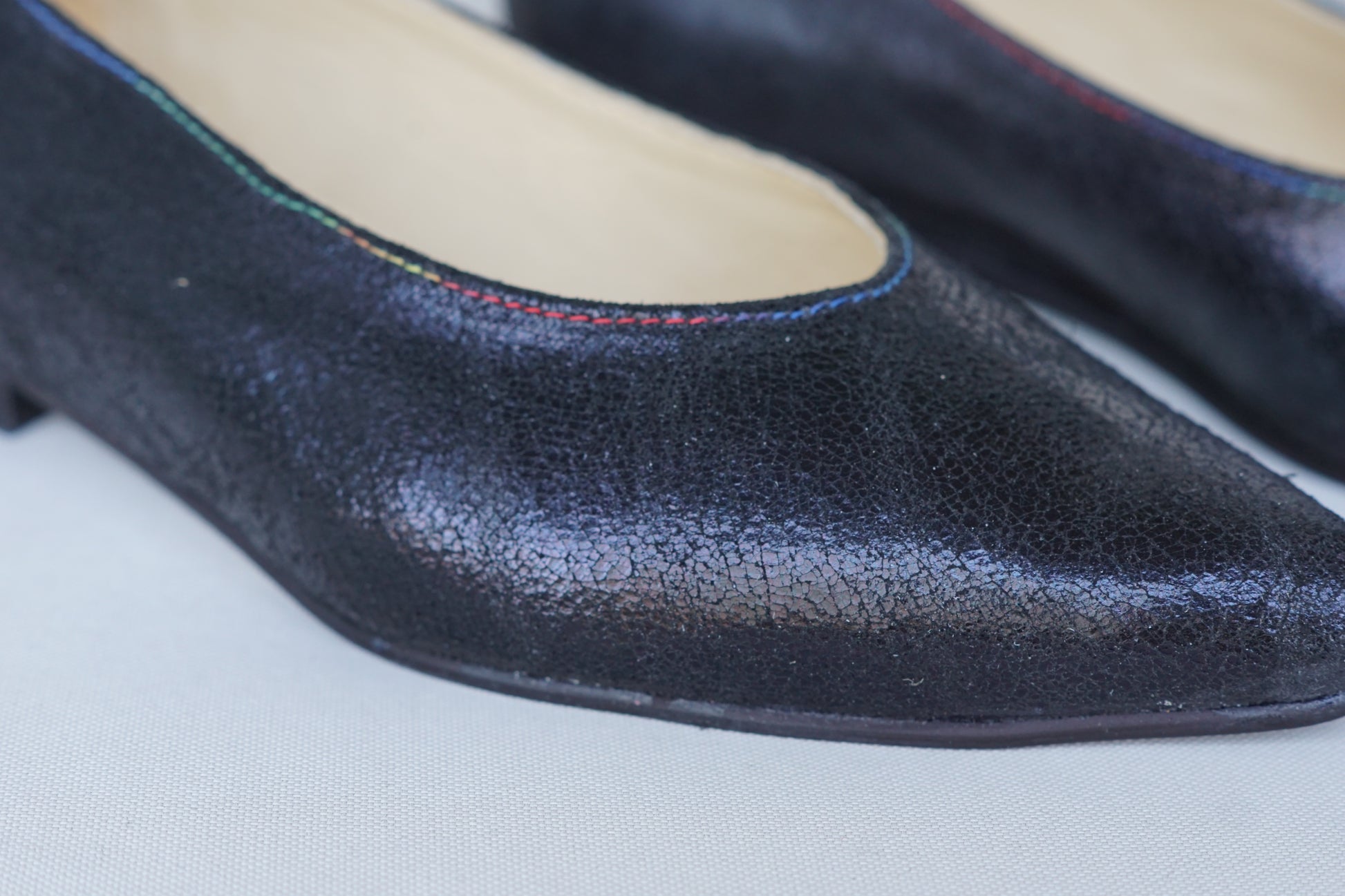 Las ballerinas negras con costura de arcoíris son el zapato esencial que toda mujer necesita en su closet. Este clásico atemporal combina la elegancia del cuero negro con un detalle único: costuras multicolor tipo arcoíris que agregan personalidad sin perder versatilidad.